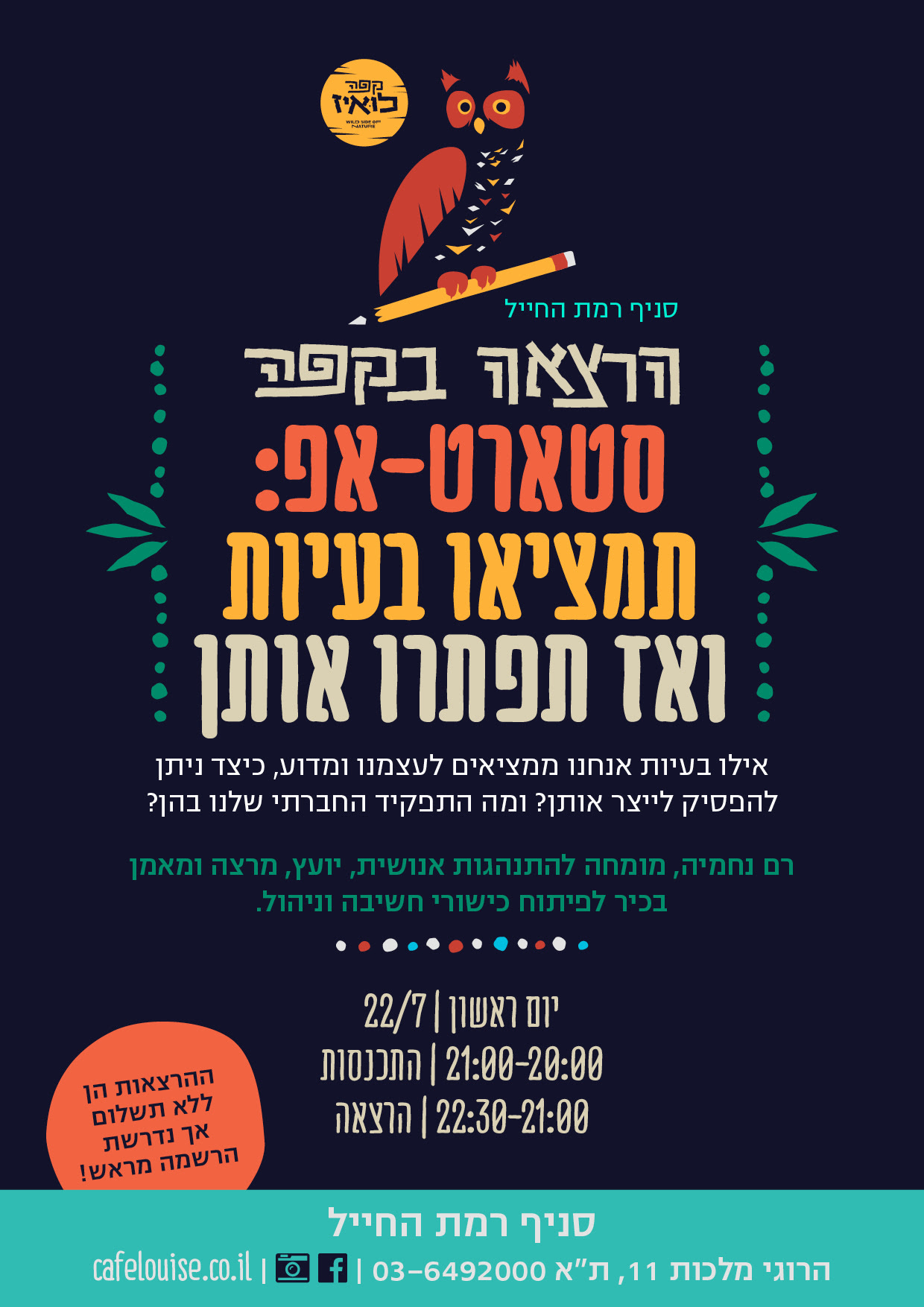 סטארט אפ תמציאו בעיות הרצאה בקפה לואיז