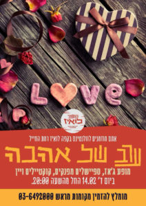 ערב של אהבה בקפה לואיז – ג'אז, ספיישלים, קוקטיילים ויין 14 בפברואר 2018 על ידי גיל Leave a Comment מעלה מפה... קפה לואיז רמת החיילהרוגי מלכות 11 - תל אביבאירועים 32.109264 34.833401 תאריך/זמן Date(s) - 14/02/20188:00 pm - 11:30 pm מקום קפה לואיז רמת החייל קטגוריות ארועים של עסקים ברובע