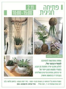 פתיחת סטודיו חדש, ובו יצירה ואמנות מן הטבע – זרי פרחים, צמחים ועוד.