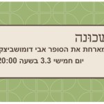 03/03/2016 @ 8:00 pm – 10:00 pm – כמה פעמים יוצא לנו לדבר עם סופר. ועוד מישהו מהשכונה שלנו. ספרו של אבי דומושביצקי "פרד במנהטן" אזל מהחנויות. תרגומו לאנגלית תחת השם "Green Kills" זוכה להצלחה ובשלשת החודשים הראשונים נרשמו למעלה מ 20,000 הורדות והביקורות מאד מפרגנות. ביום חמישי ה 3.3 בשעה 20:00 נתכנס בשכונה (רח' דיסנצ׳יק 5, תל אביב) לארוחת ערב ושיחה עם […]