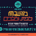 17/01/2017 @ 7:00 pm – 9:00 pm – ערב של יצירה והנאה, ערב של הזדמנות לחוות שלווה ושקט פנימי דרך יצירת המנדלה . בסדנה נתחבר לעולמנו הפנימי באמצעות צבעים וצורות ונצייר מנדלה בצורה אינטואטיבית ורגועה. בסדנה נצייר את התבנית העתיקה "זרע החיים", נחווה את אושר היצירה ונחזור הביתה עם מנדלה אישית. לידיעה, המנדלה הינה יצירה במעגלים. בדומה למעגלי החיים, היא מתחילה בנקודת המרכז […]