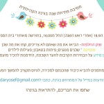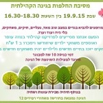 18/09/2015 @ 4:00 pm – 8:00 pm – מסיבת פתיחת שנה! יהיו שם: פעילות לילדים, שכנים מנגנים (תביאו כלים!) דוכן מידע לקראת הבחירות לוועד השכונה, ומכירת כיבוד לטובת קופת הגינה (גם את זה תביאו אם אפשר, וגם כלי אוכל רב פעמיים עבורכם). מוזמנים להפיץ את ההזמנה לכל עבר, בתקווה להרחבת מעגל האוהבים והתורמים לגינה. (הגינה נמצאת בחורשת דוד ילין מאחורי בית הספר)